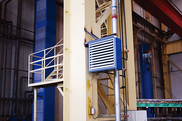 大連重型公司采用康平熱水型側(cè)吹暖風(fēng)機(jī)。