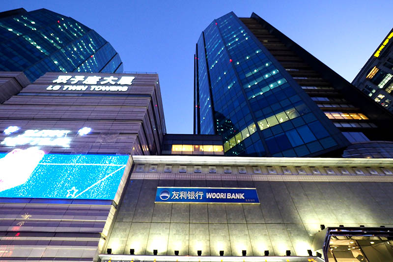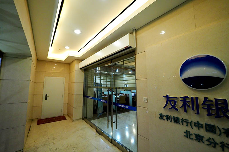 位于雙子座大廈的韓國(guó)友利銀行北京分行,2016年,選用了康平明裝電熱風(fēng)幕。